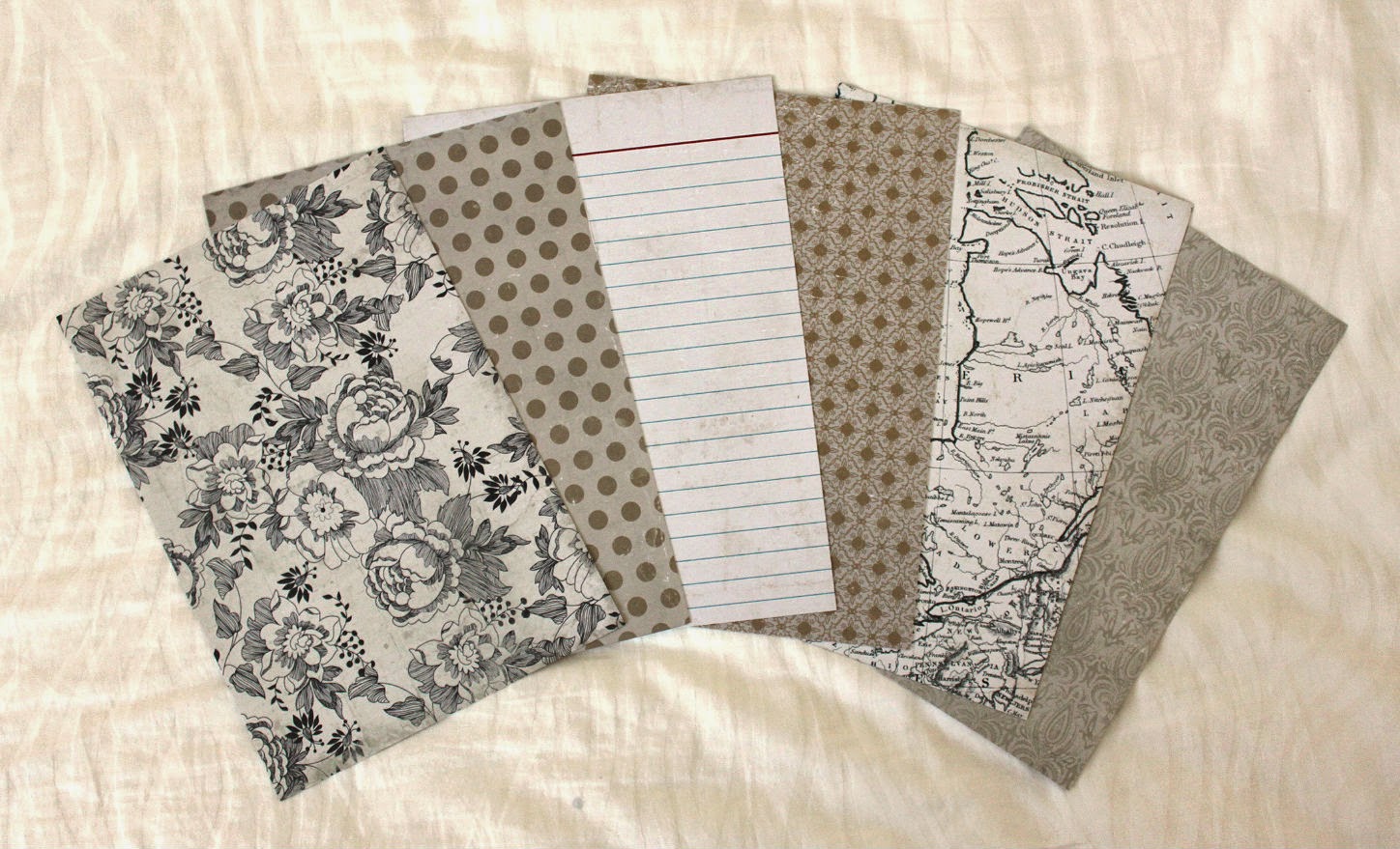 I've opted to use the same paper as I did for my Holborn seeing they were the only decent, double-sided low-key dividers that suited the colour theme. The papers are from Project Life's Vintage Edition paper pack and are a little stiffer than regular A4 paper, which makes it great divider-material. It came in the usual 30x30cm size, so I had to trim it down to enable it to fit into the upcoming A5: